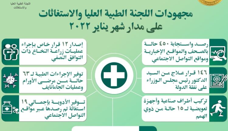 إصدار قرارات لعمليات زراعة النخاع ذات التوافق النصفي..وتركيب أطراف صناعية وأجهزة تعويضيةتابع الدكتور مصطفى مدبولي، رئيس مجلس الوزراء، الجهود المبذولة من قبل اللجنة الطبية العليا والاستغاثات بالمجلس، خلال شهر يناير الماضي، وذلك من خلال التقرير المقدم من الدكتور حسام المصري، المستشار الطبي لرئاسة مجلس الوزراء، رئيس اللجنة.وأثنى رئيس الوزراء على الجهود المبذولة من قبل اللجنة الطبية العليا والاستغاثات، وتعاملها الفوري مع ما يتم رصده من استغاثات للمواطنين تتعلق بالقطاع الصحى، وسعيها لتوفير الرعاية الطبية اللازمة لهم، بالتنسيق مع الوزارات والجهات المعنية، مؤكداً أهمية الاستمرار في تكثيف هذه الجهود من أجل رفع المعاناة عن المرضى وذويهم، وتوفير كافة سبل الدعم الممكنة لهم، تنفيذاً لتوجيهات الرئيس عبدالفتاح السيسي، رئيس الجمهورية، بالعمل على توفير الرعاية الصحية الشاملة واللائقة لجميع المصريين.كما أشاد مدبولى بتعاون الجهات المسئولة عن الخدمات الصحية، فى الاستجابة لأى شكوى أو استغاثة، مؤكدا أننا جميعا نعمل من أجل تحقيق هدف واحد هو خدمة المواطن المصرى.من جانبه، أوضح الدكتور حسام المصري أنه تمت الاستجابة خلال الفترة المشار إليها لنحو 450 حالة، تم رصدها عبر الصحف والمواقع الإخبارية، ومواقع التواصل الاجتماعي.وأشار المستشار الطبي لرئاسة مجلس الوزراء إلى أن الاستجابات خلال شهر يناير الماضى شملت صدور 146 قرار علاج من رئيس الوزراء على نفقة الدولة، للفئات الأكثر احتياجاً، فضلاً عن إجراء 123 عملية جراحية، وإصدار 12 قراراً خاصا بإجراء عمليات زراعة النخاع ذات التوافق النصفي.وأضاف أن مجهودات اللجنة خلال الشهر الماضي تضمنت أيضاً عمل الإجراءات الطبية لـ 63 حالة من مرضى الأورام وعمليات الجامانايف، وتوفير الأدوية لـ 19 استغاثة تم رصدها عبر مواقع التواصل الاجتماعي، مع تركيب أطراف صناعية وأجهزة تعويضية لـ 15 حالة من ذوي الاحتياجات الخاصة.