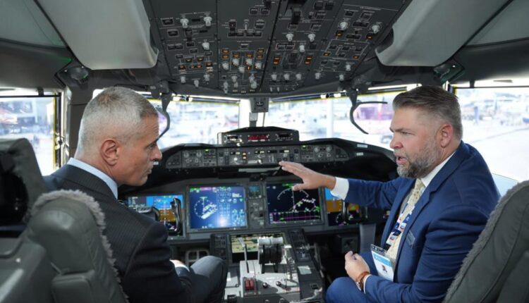 وتفقد الطيار أحمد عادل قمرة القيادة المزودة بأحدث أنظمة الملاحة والتحكم، إضافة إلى الاطلاع على تصميمات المقصورة الداخلية التي توفر مستويات متقدمة من الراحة للركاب، ومساحات أوسع للتخزين، إلى جانب التجهيزات التقنية المصممة لضمان رحلة أكثر سلاسة وكفاءة.